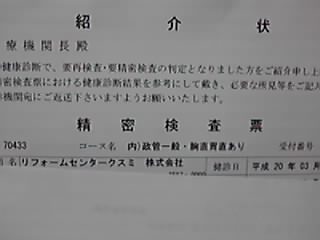 先週にあった健康診断の結果が悪くて、(やっぱり)病院から『直ちに精密検査に来い!』と命令が来ました。(^_^;)