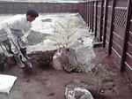 今日は展示場の北側の庭に石庭を造っています。和室から見える庭なんで和風に仕上げてます。