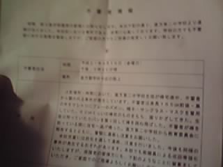直方第二中学校から教育委員会に報告するとともに、警察に連絡し注意をお願いした。